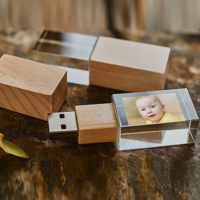 Glazen USB Stick met Naam, Foto of Tekst Bedrukken